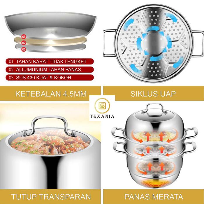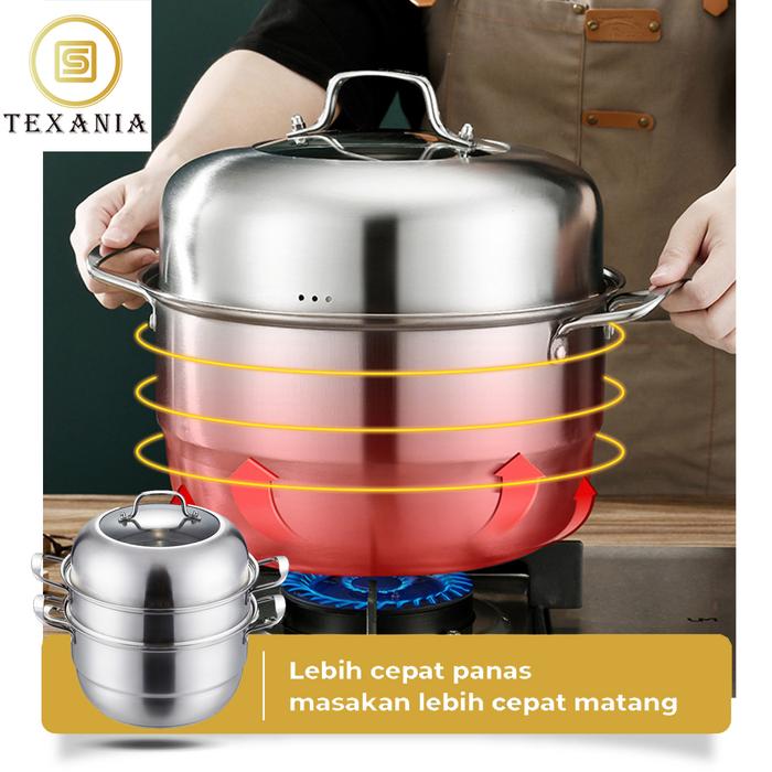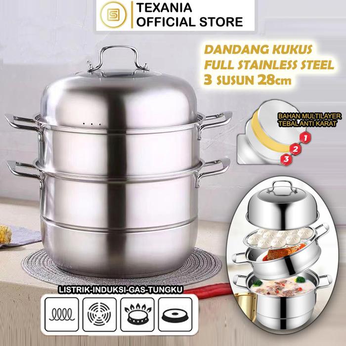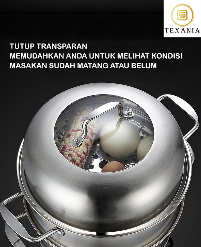 Exclusive Ischa TEXANIA Panci Kukusan Serbaguna Steamer 3 Susun Panci Kukus Stainless Steel Panci