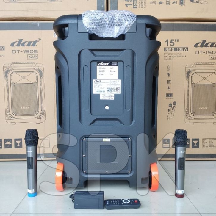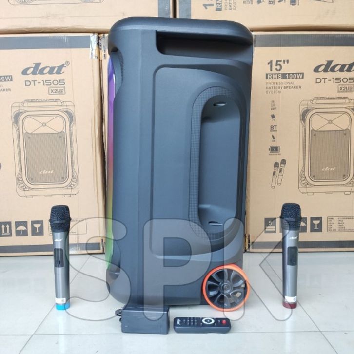 Speaker Portable DAT DT 1505 X2 15 inch 2 Mic Wireless