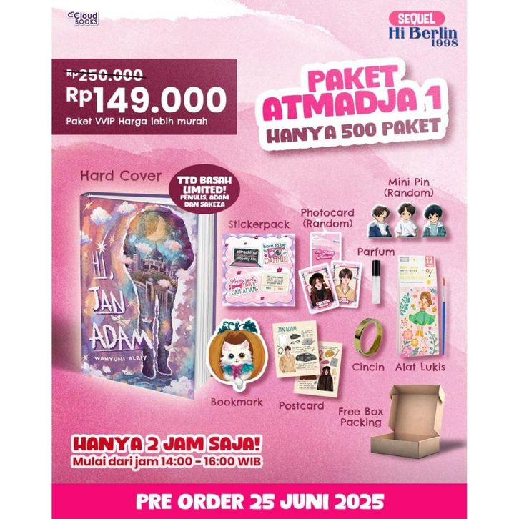Atmadja 1 (2JAM), Atmadja 2 (2JAM), BAGCHARM ADAM, BAGCHARM BRYAN, BAGCHARM HAZEL, BAGCHARM RAKA, BAGCHARM SAKEZA, GEN ATMADJA 1, GEN ATMADJA 2, GEN BULBUL, GEN CACICU 1, GEN CACICU 2, GEN JERMAN, P exlusive hc berlin, P exlusive sc berlin, T-SHIRT - L, T-SHIRT - M, T-SHIRT - XL, T-SHIRT - XXL, TOTEBAG, book onli hi berlin, book onli jan adam, paket bundling