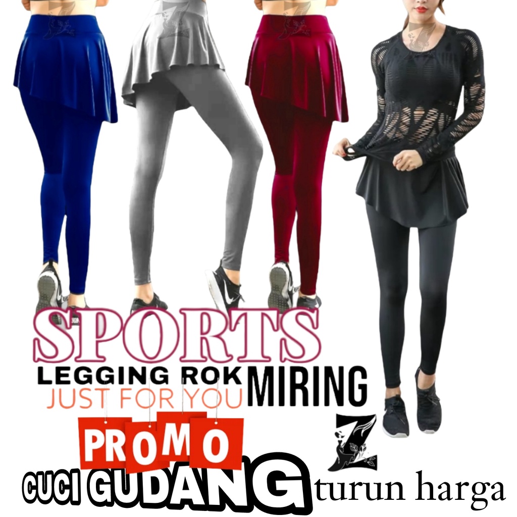 Legging Rok Senam Yoga Balet Zumba Jogging - legging rok miring - rok olahraga wanita