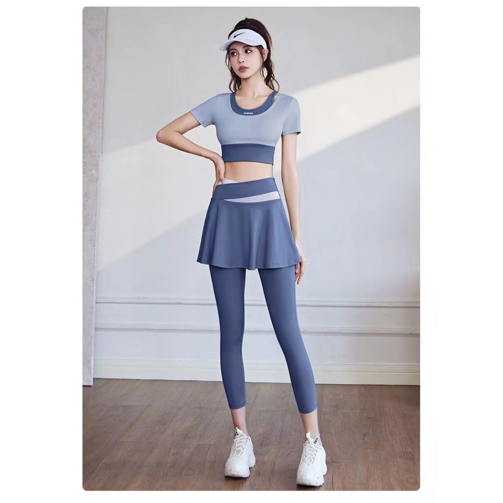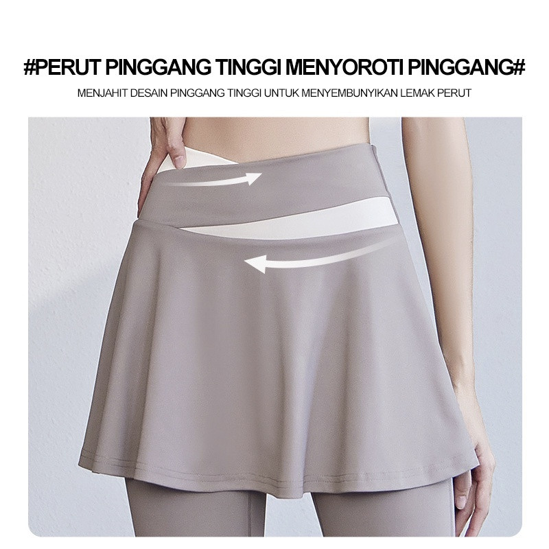 Legging Celana Rok Olahraga Wanita Skirt High Waist Yoga Dwi Lapisan 2 in 1 Gym Tennis Running Sport C0013G4