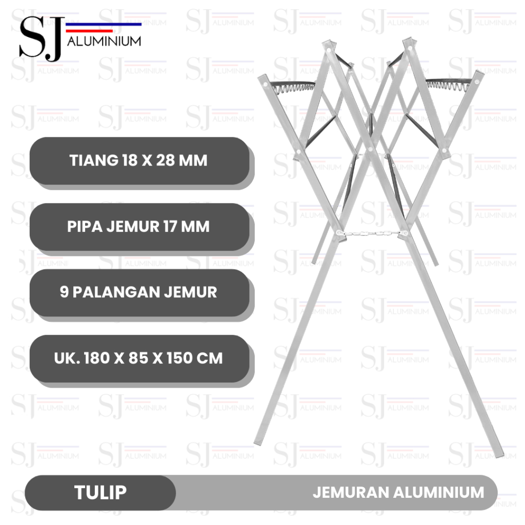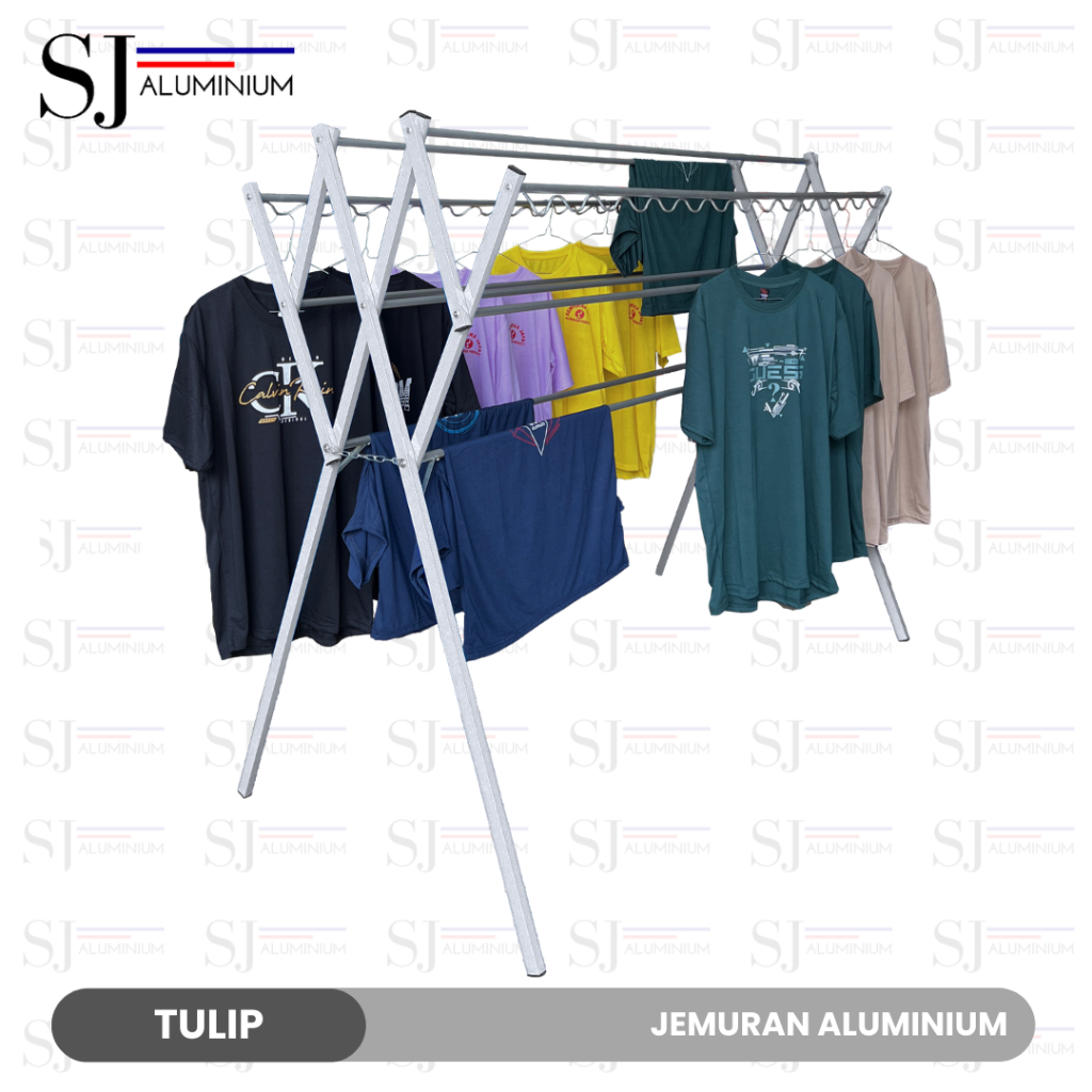 Jemuran Aluminium TULIP - Jemuran Baju & Pakaian - Jemuran Handuk Lipat - Kuat Tahan 20 KG - Ukuran Jumbo 180 CM Warna Silver
