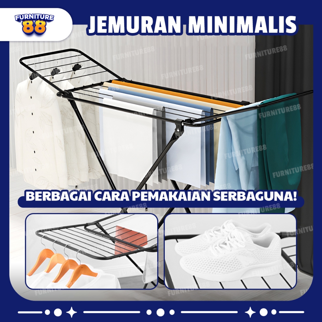 Furniture88 Jemuran Baju Dan Handuk Lipat Untuk Indoor Atau Outdoor Desain Dua Sayap