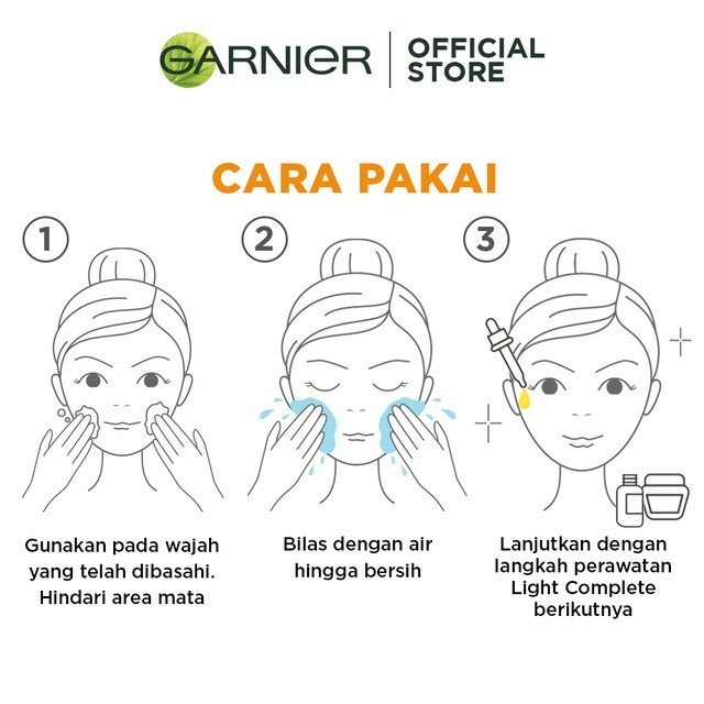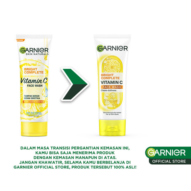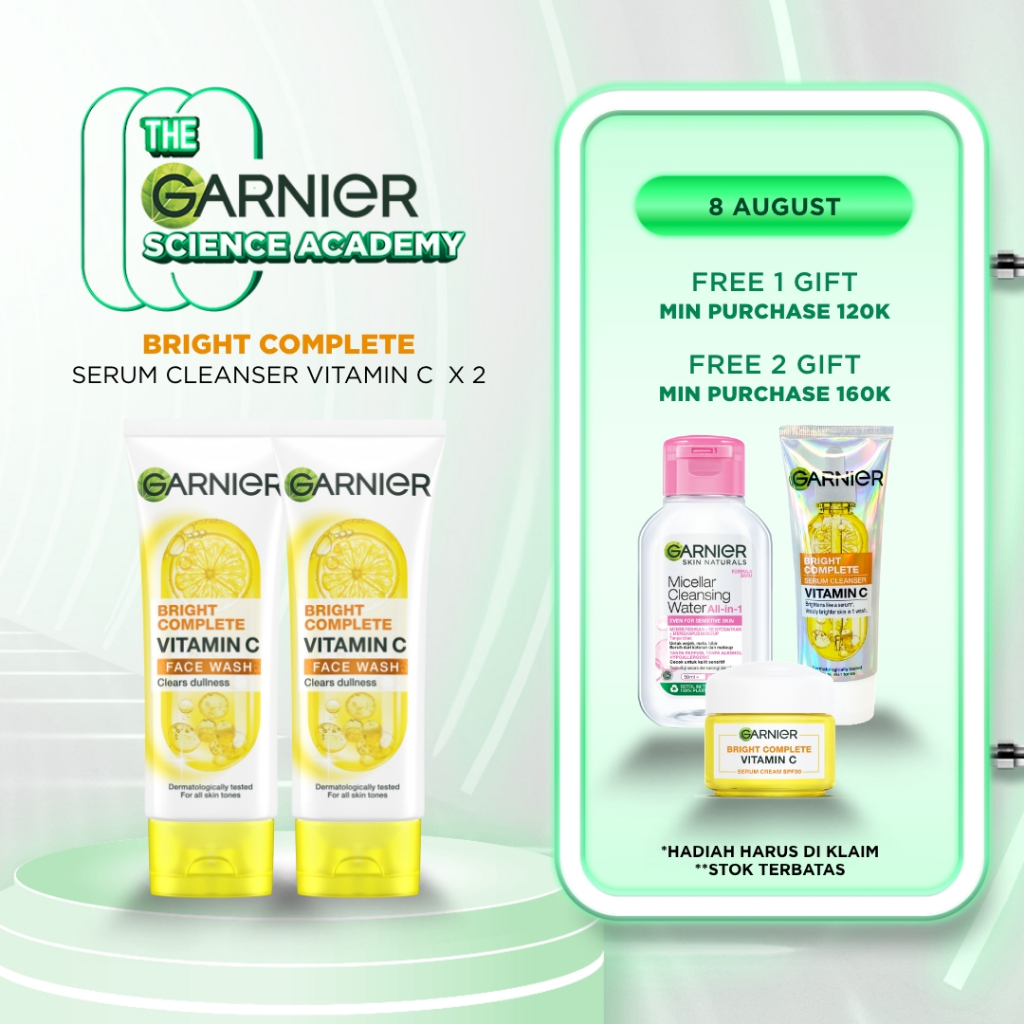 (PAKET HEMAT ISI 2) Garnier Bright Complete Vitamin C Brightening Face Wash Skin Care - 100ml x 2 (Skincare Pembersih Wajah Untuk Kulit Cerah Cepat)