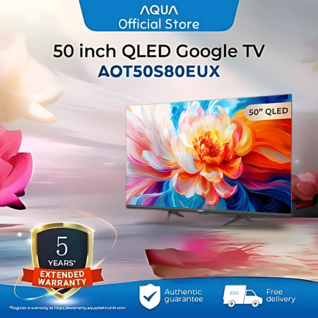 AQUA SMART GOOGLE TV AQT50S80EUX 50 43 40 32 INCH ELEKTRONIK RUMAH TELEVISI DIGITAL BLUETOOTH QLED 4K HDR GARANSI RESMI
