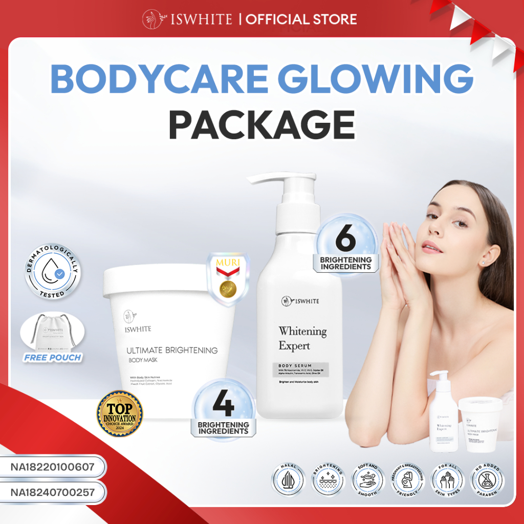 [BEST COMBO] ISWHITE Bodycare Glowing Package - Paket Pencerah Kulit | Ampuh Mencerahkan Kulit Lebih Cepat | Body Mask - Masker Badan | Body Serum BPOM HALAL
