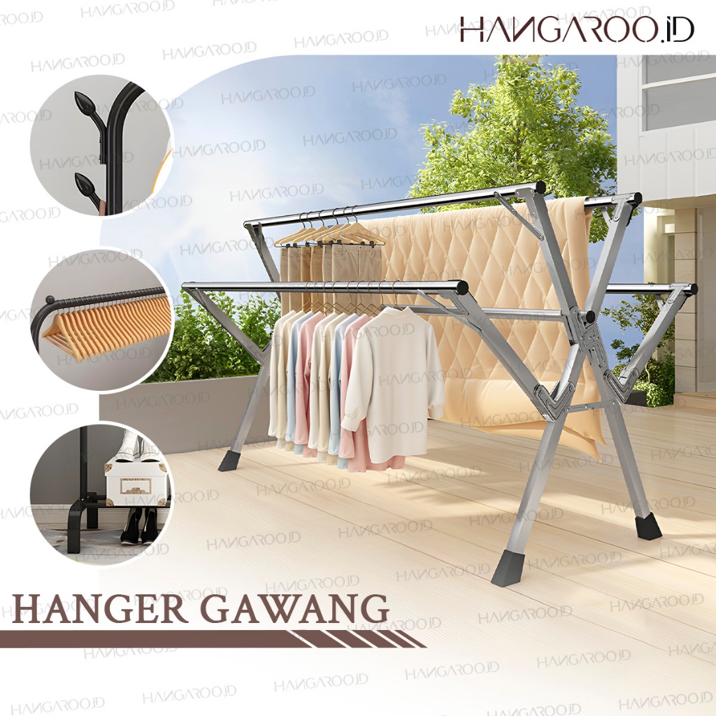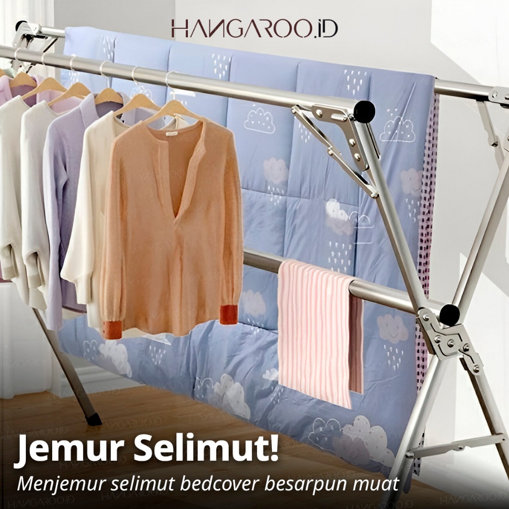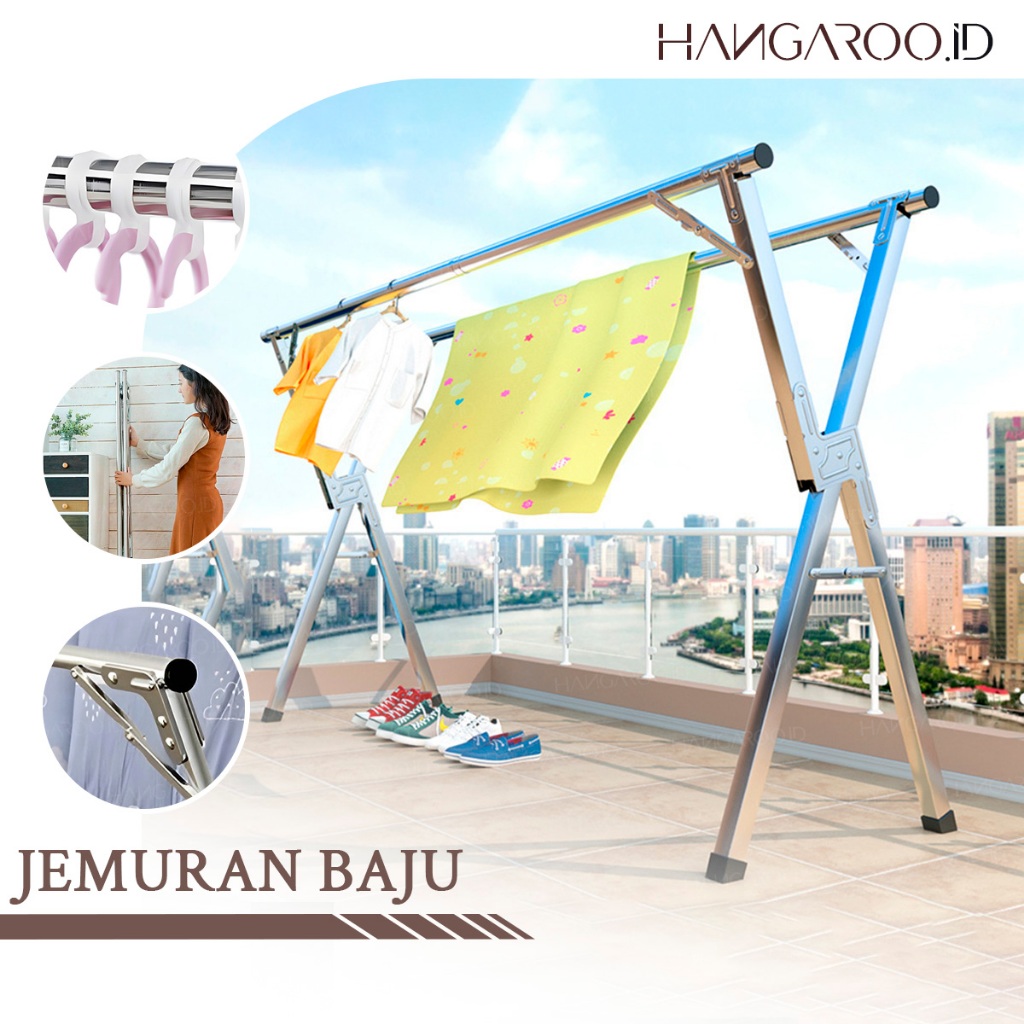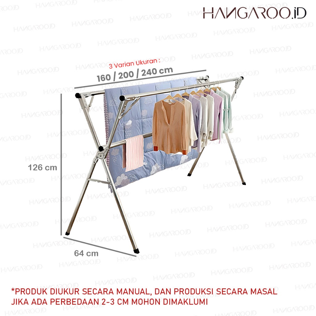 Hangaroo Jemuran Baju 160,200,240cm Jemuran Pakaian Lipat Portable Besi Kokoh Gantungan Outdoor