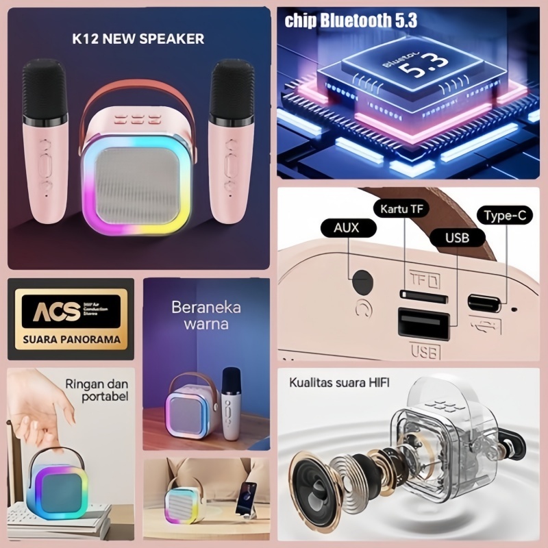 [Mall] 【DISKON WAKTU TERBATAS】SPEAKER LED BLUETOOTH TRENDYKITA – 2 MIC INCLUDED, SET KARAOKE LENGKAP SUARA SURROUND 3D KUALIT