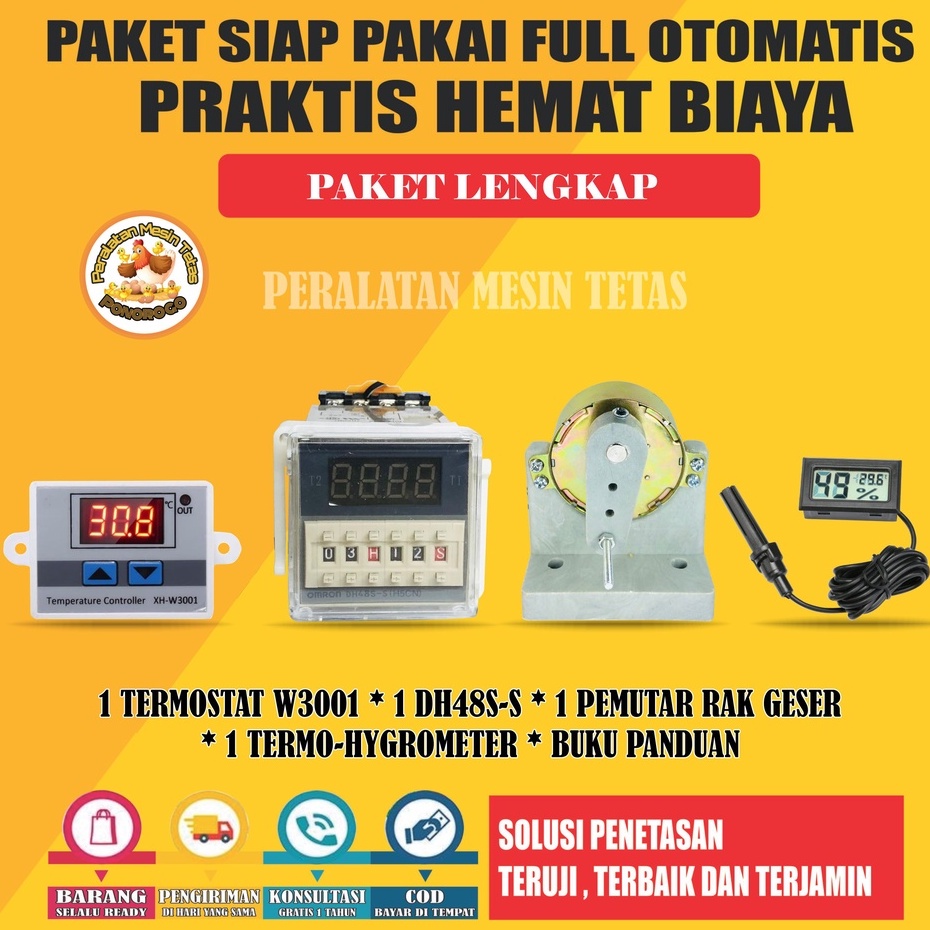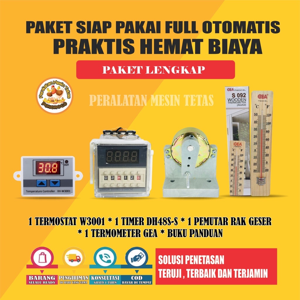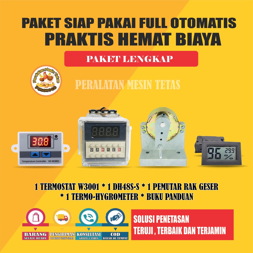 TERLARIS Paket Full Otomatis Rak Geser Thermostat W3001 Thermo-Hygrometer Mesin Tetas Telur Full Otomatis