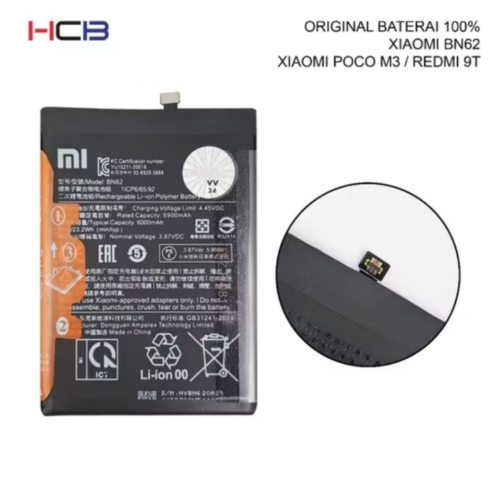 BEST SELLER ORIGINAL HCB | Baterai Xiaomi Redmi 9T / POCO M3 BN-62 ORIGINAL 100 Battery Batteray Batere Batre Batrai Bt