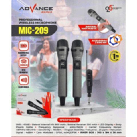 Advance Digitals Audio MIC-209 Professional Dual Microphone Wireless Jack 6,5mm Jangkauan 20-30m Bergaransi Resmi 1 Tah