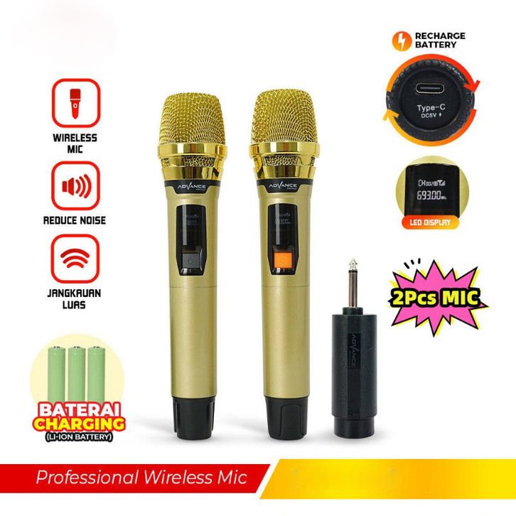Mic Wireless Wireless Bluetooth MIC 206 MIC206 / Mic Double Wireless Advance mic206 6old Microphone mikrofon Batrei da