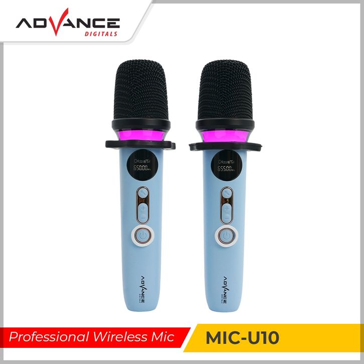 Advance U10 Mic Wireless Mikrofon Ganda Dengan Tombol Mute & Volume Lampu Rgb Bisa Diisi Ulang Profesional Microphone