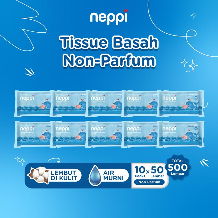 (10 Pcs x 50 Lembar) Neppi Baby Tisu / Tissue Basah Wipes Non Parfum Aloe Bayi Peralatan Diaper