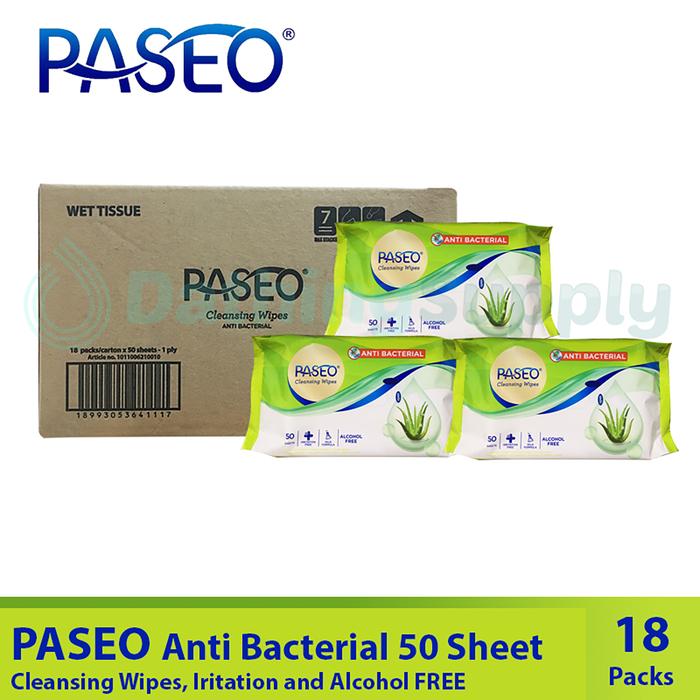 ( GROSIR 1 DUS ) Tissue Paseo Cleansing Wipes Anti Bacterial 50 Sheet / Tisu Tissu Basah 50s isi 18 PACK