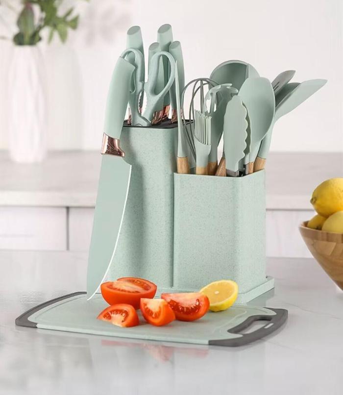 KITCHENWARE SET 19 PCS PISAU DAN SUTIL SILIKON SPATULA SET 19 PCS PISAU GUNTING SET TALENAN