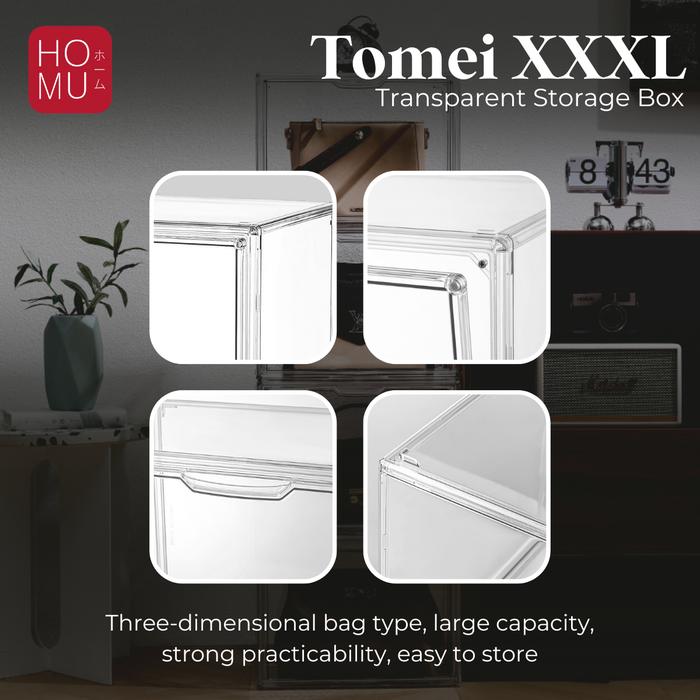 HOMU TOMEI Transparent Storage Display Box XXXL Kotak Penyimpanan Sepatu Display Tas Buku Transparan Magnet non Acrylic