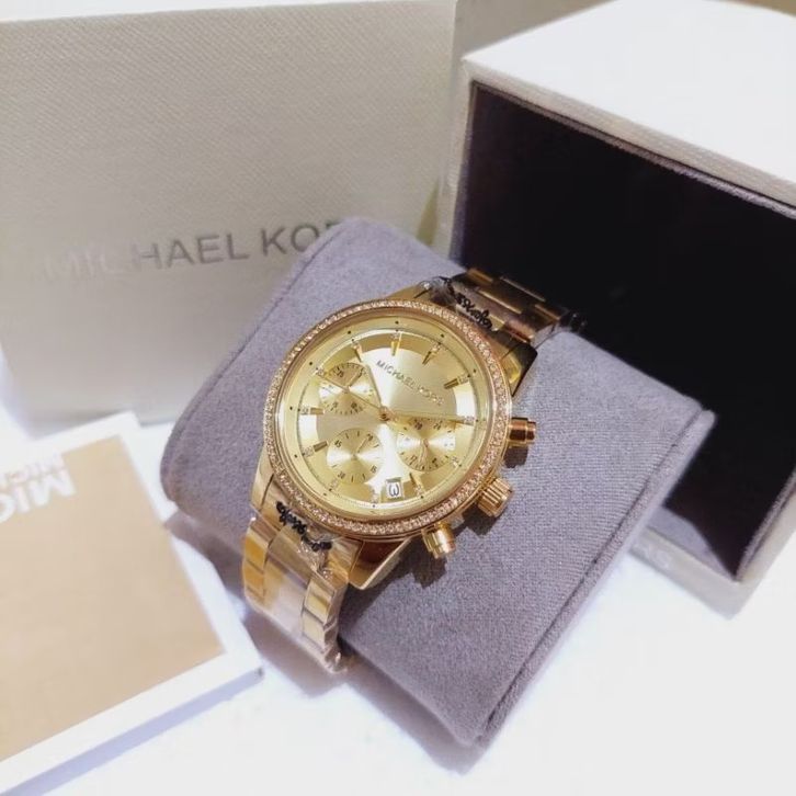 JAM TANGAN WANITA MICHAEL KORS MK6356 / MK 6356 GOLD FREE ONGKIR - FREE BOX ORIGINAL-GARANSI 1 TAHUN