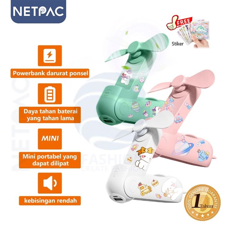 kipas portable NETPAC FA20 Kipas Angin Portable Lipat 3 in 1 Powerbank Classic Macaron Genggam Mini Fan Original