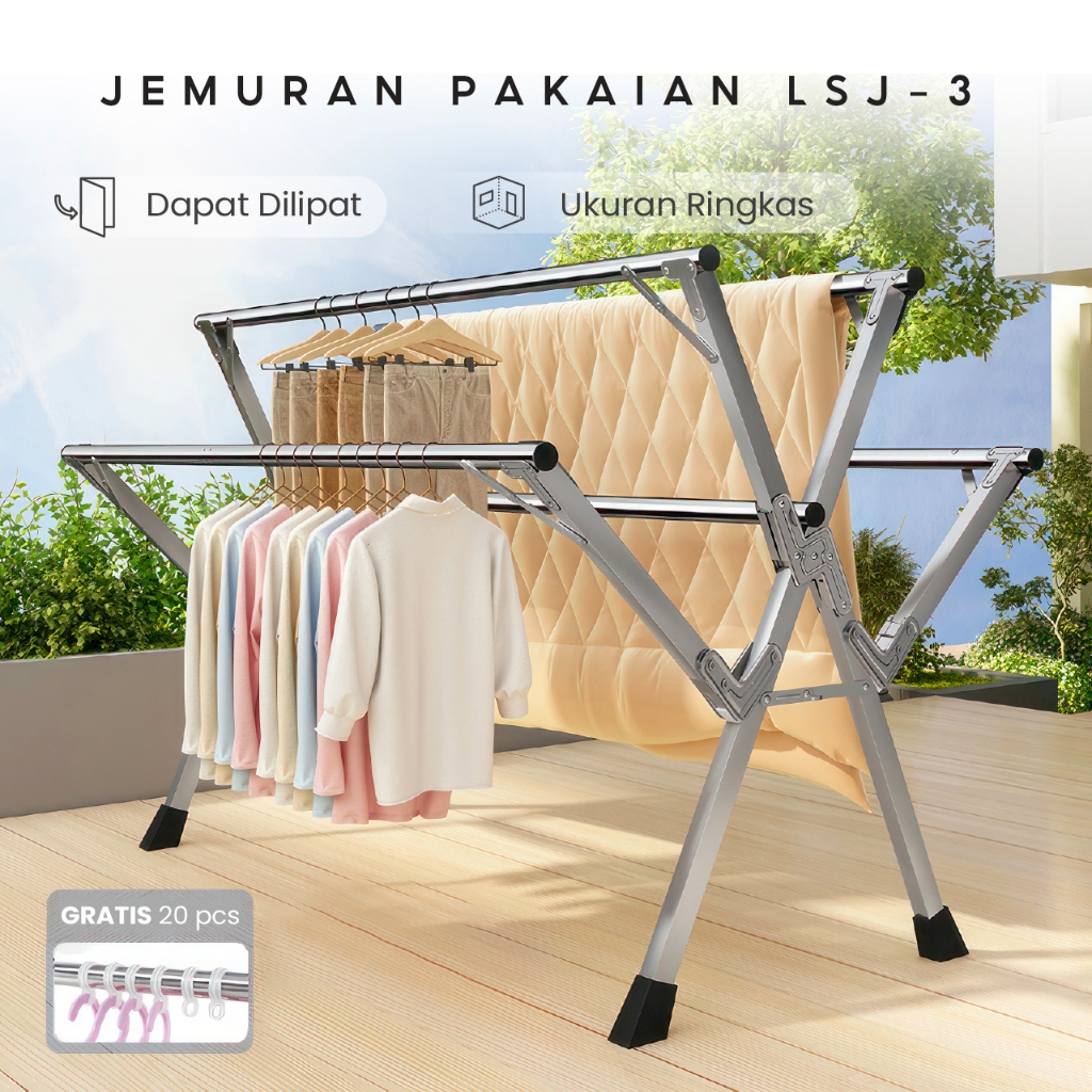 Dreamhome Jemuran Baju Lipat 5 Tiang Jemuran Baju Portable Jemuran Pakaian Anti Karat Kuat 160-240CM