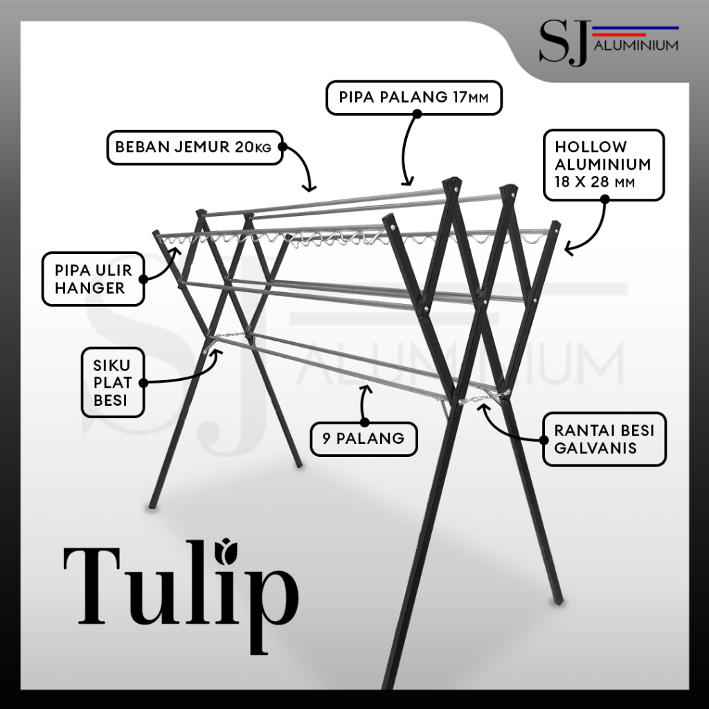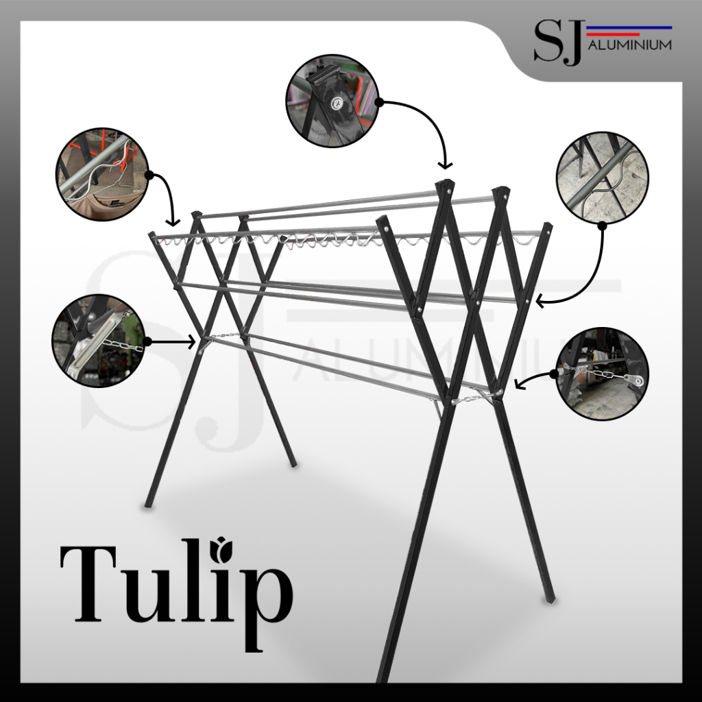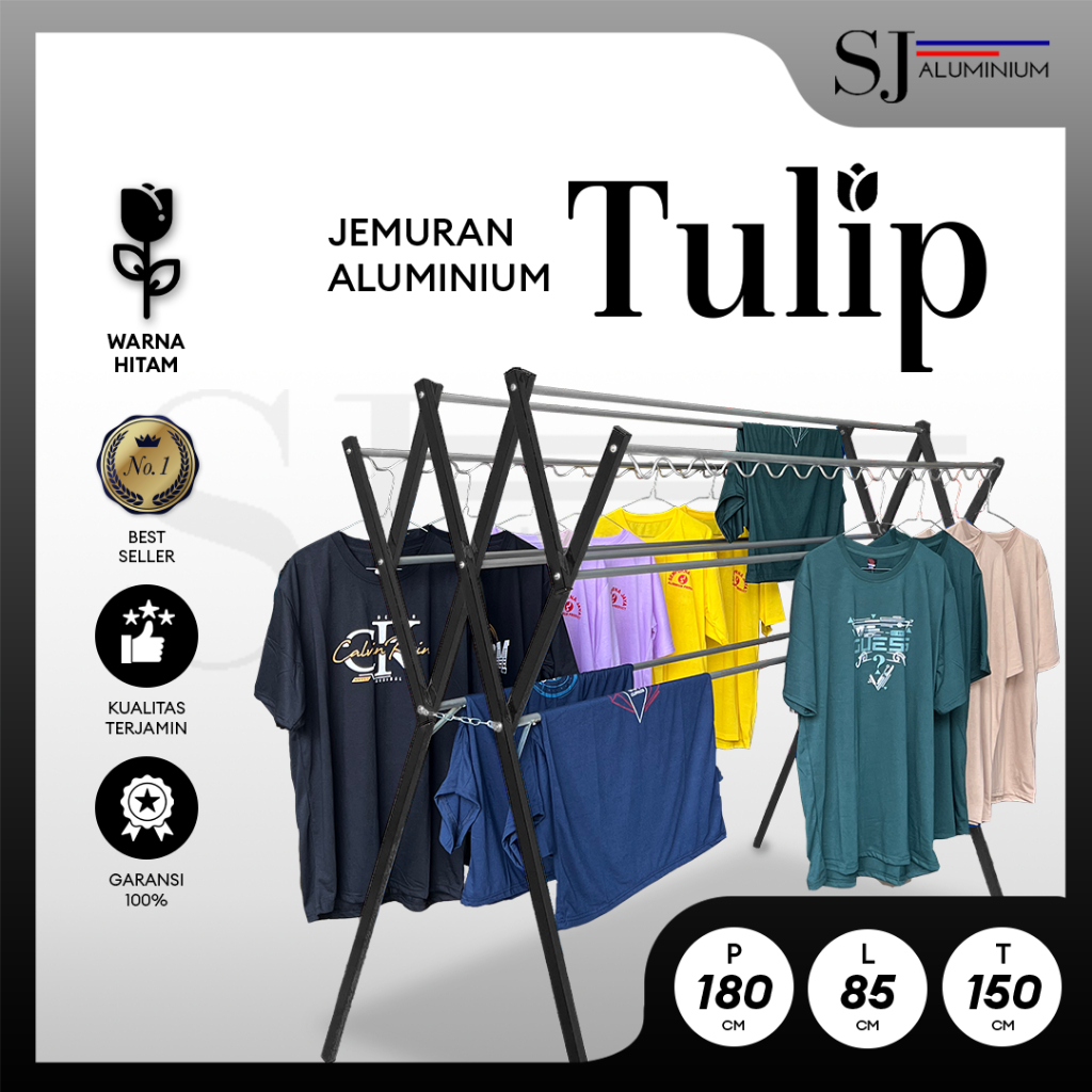 [TULIP] Jemuran Baju & Pakaian / Jemuran Aluminium Lipat / Jemuran Gantung Baju Bayi / Rak Handuk - Jumbo Aluminium Warna Hitam 180 CM / 1,8 M