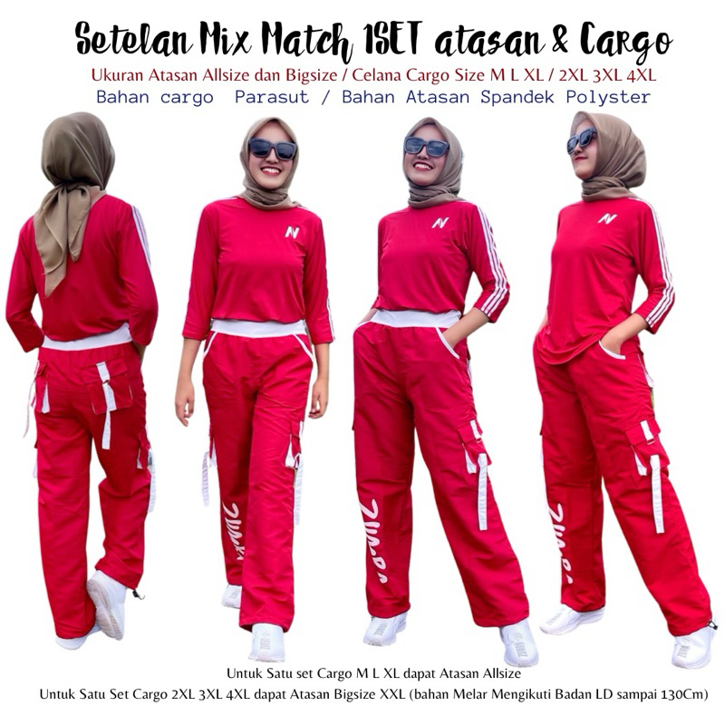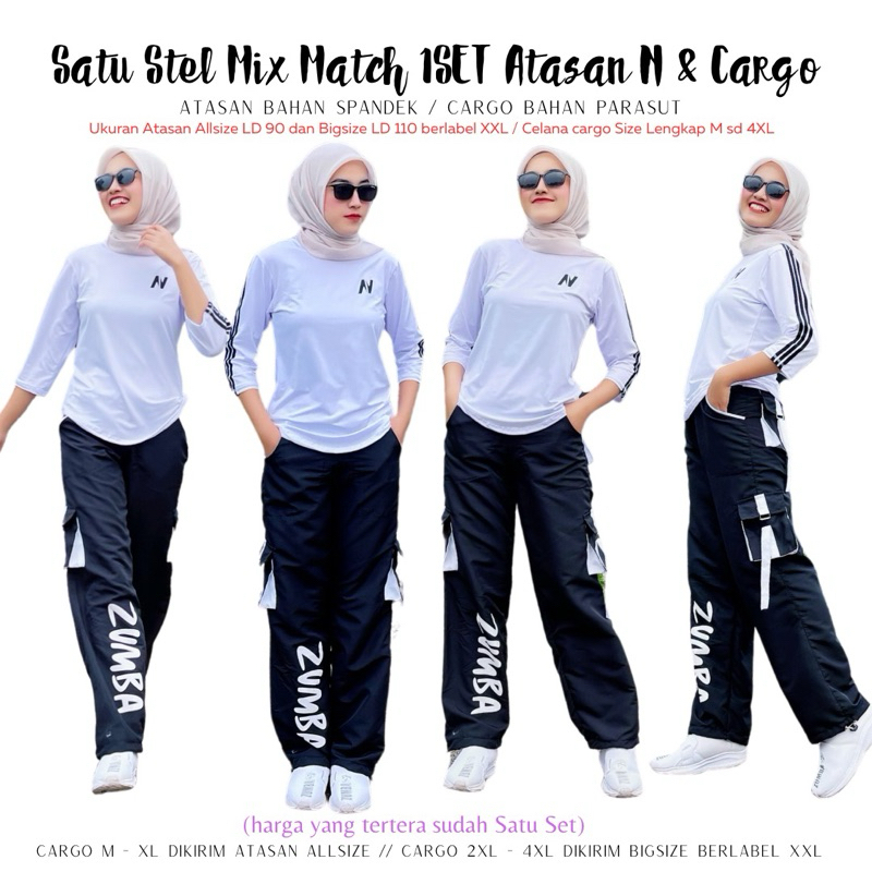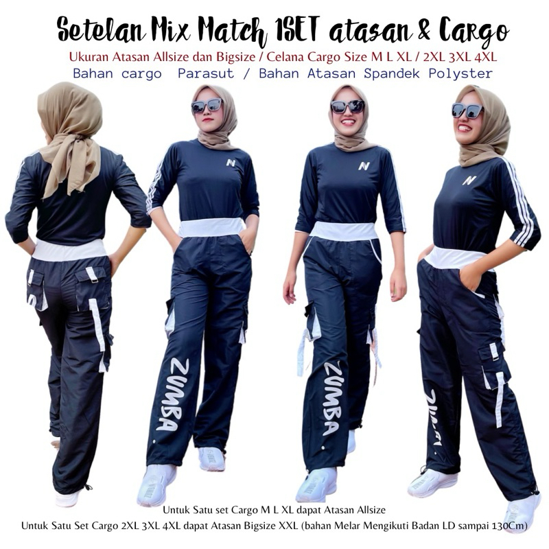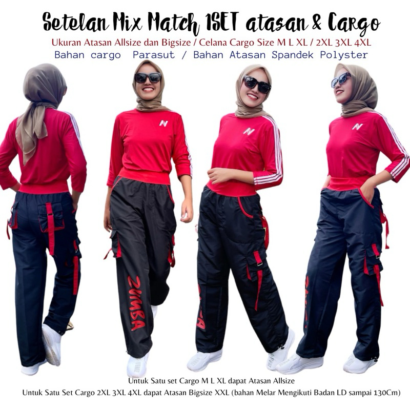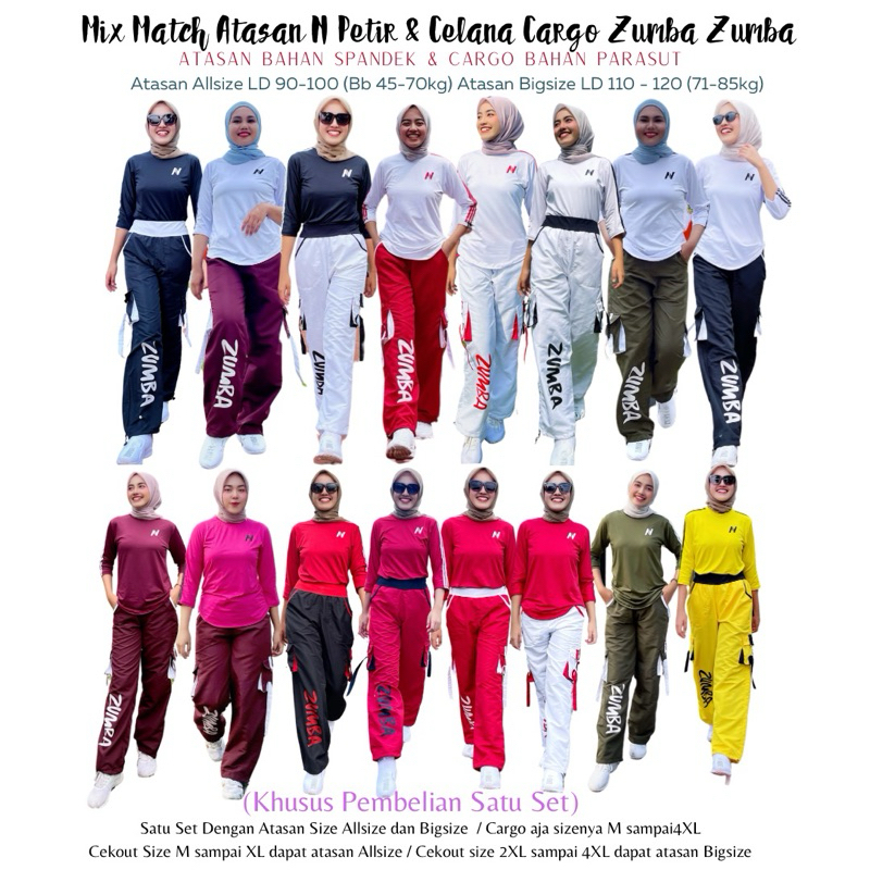 Mix Atasan N Petir dan Cargo Zumba 16 Warna Atasan bahan Spandek Polyster Celana Bahan Parasut Stelan Zumba Aerobik Fitness