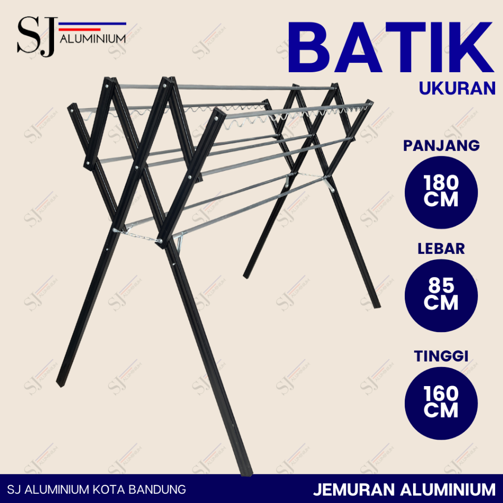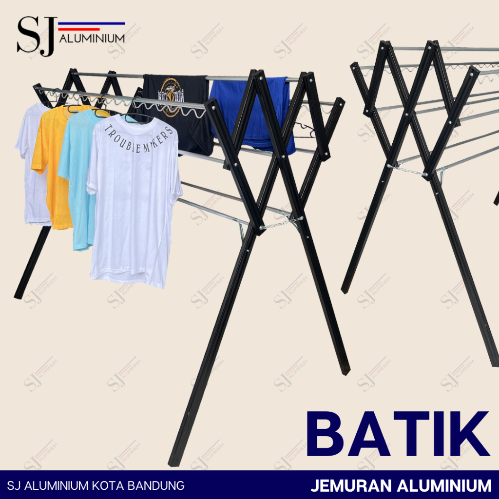 BATIK - Jemuran Baju Aluminium Jumbo 180 CM / Jemuran Pakaian Rak Handuk Lipat Warna Hitam / Motif Garis - Ukuran 1,8 M