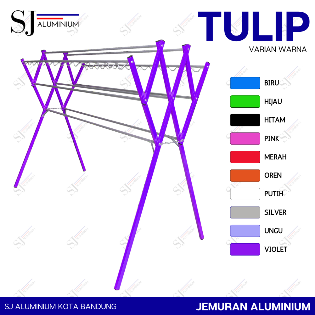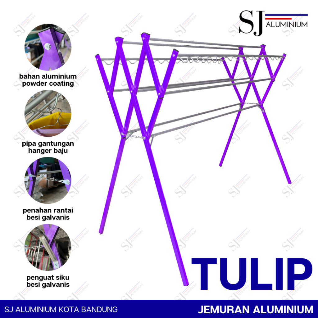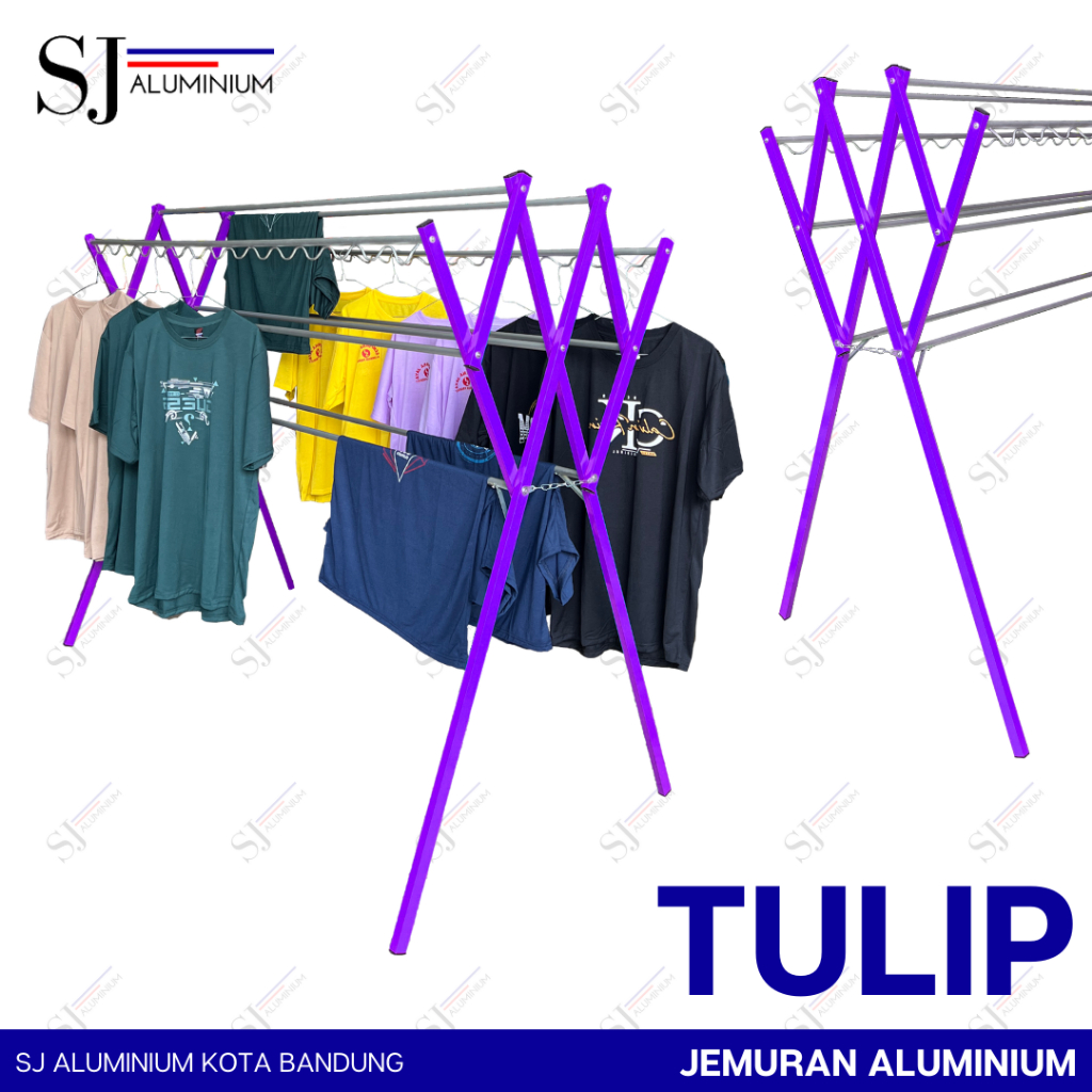 TULIP - Jemuran Aluminium Jumbo 180 CM / Jemuran Pakaian / Jemuran Baju / Rak Handuk - Tahan Beban 20 KG / Warna Violet - Ukuran 1,8 M