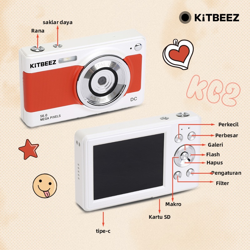 KITBEEZ KC-2 KAMERA DIGITAL CCD CAMERA 56MP 8X ZOOM 1080P ANDA DAPAT MENGAMBIL FOTO DAN VIDEO COCOK UNTUK SISWA