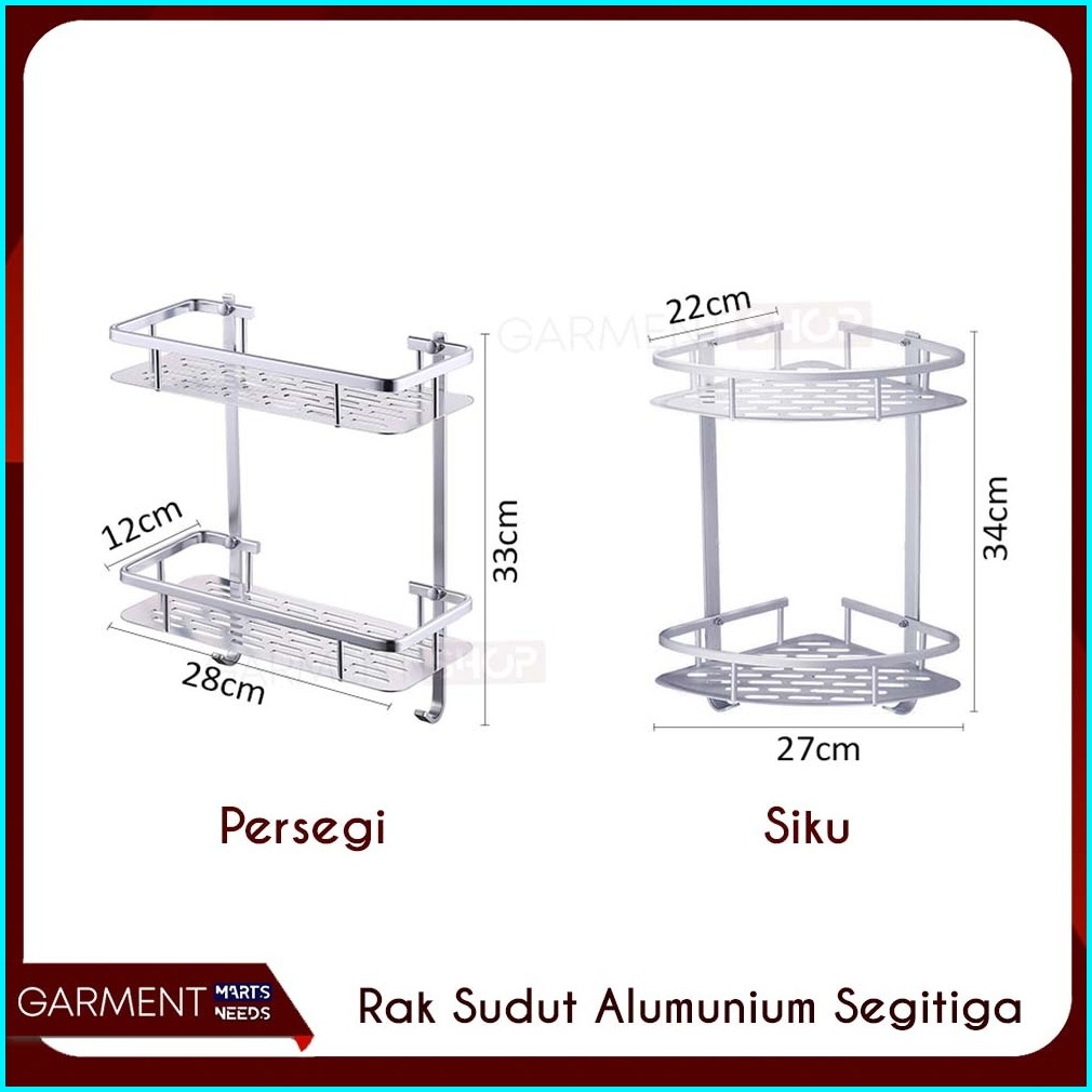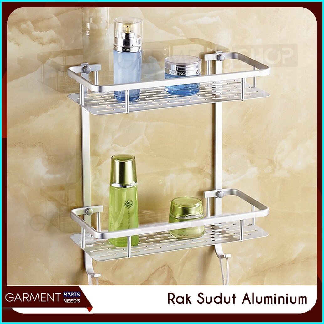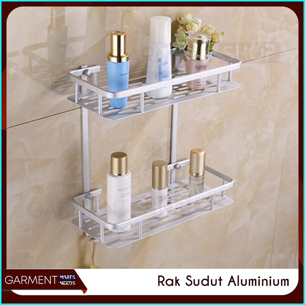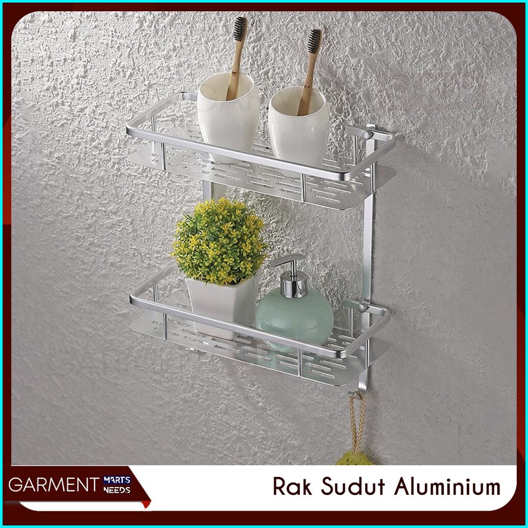 Rak Sudut Kamar Mandi Aluminium 2 Tingkat Sabun Dinding Gantung Dapur