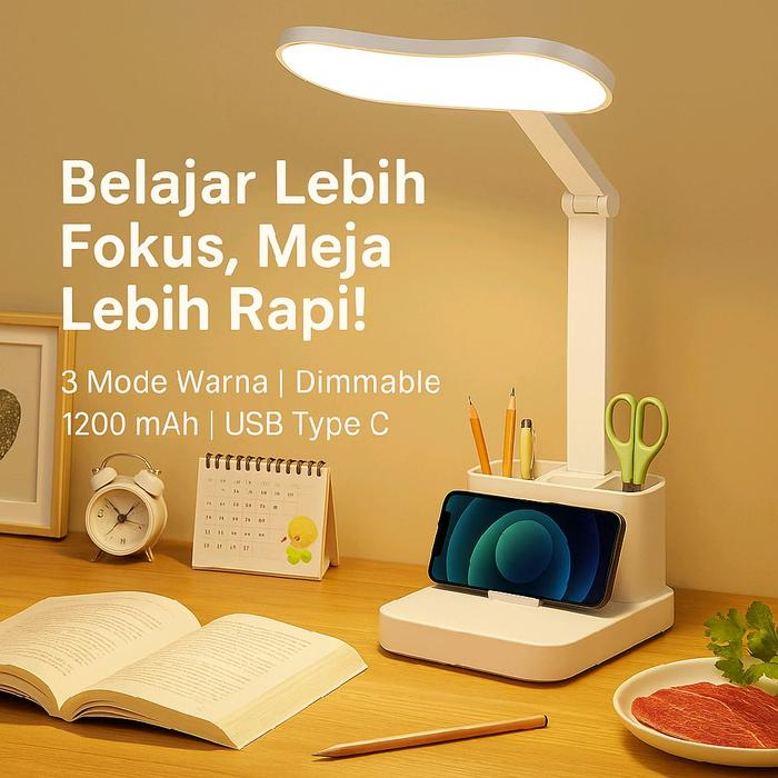 ARUDUN Lampu Meja Belajar AR1319 – Lampu LED 3 Warna Lipat dengan Pen Holder & Baterai 1200mAh