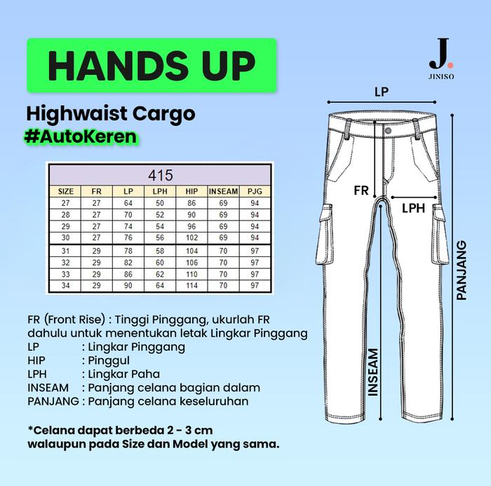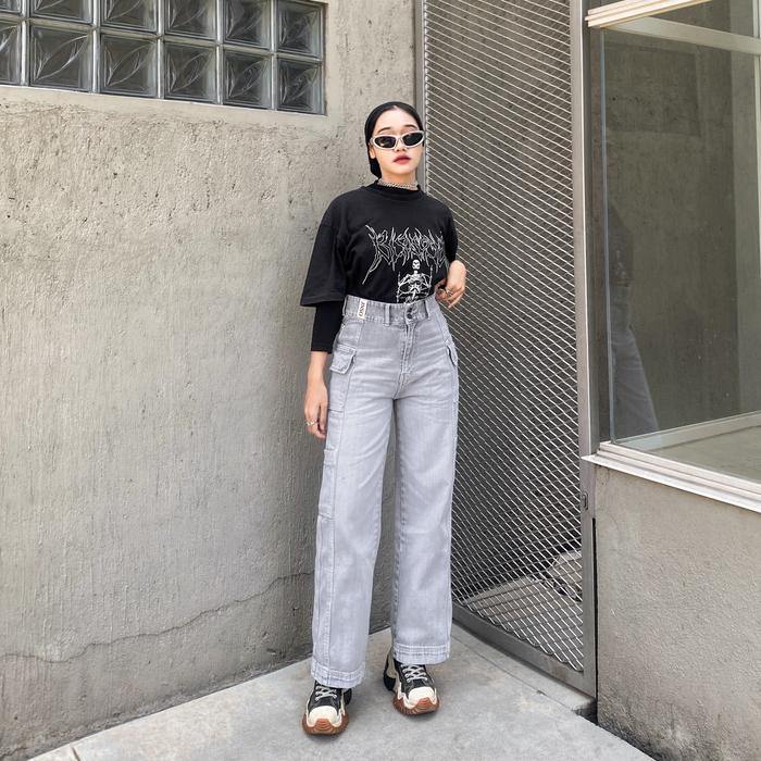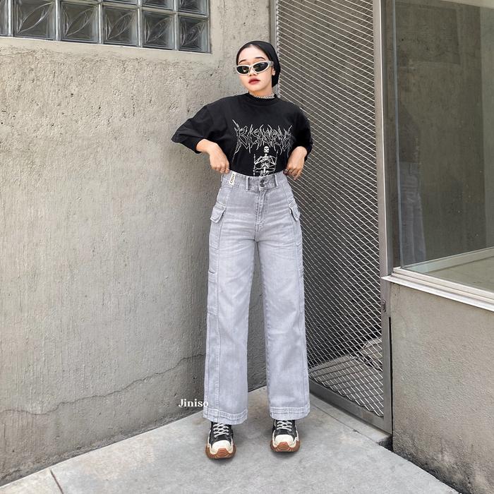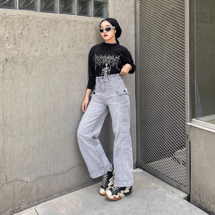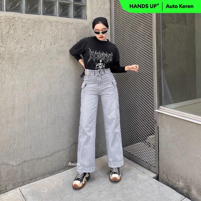 JINISO HANDS UP - 415 Cargo Baggy Highwaist Celana Jeans Wanita