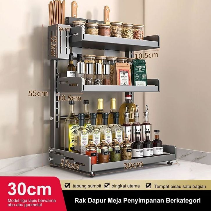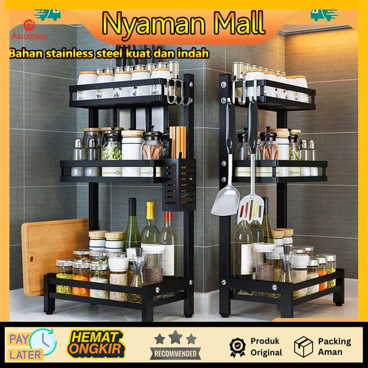 Rak Bumbu Dapur Stainless Steel Rak Penyimpanan Dapur Rak Bumbu Rak Dapur Stainless 3 Susun 2 Susun 3 Tingkat