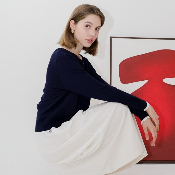This Is April Outer Wanita Knit Lengan Panjang Angelia Cardigan Navy dan Grey
