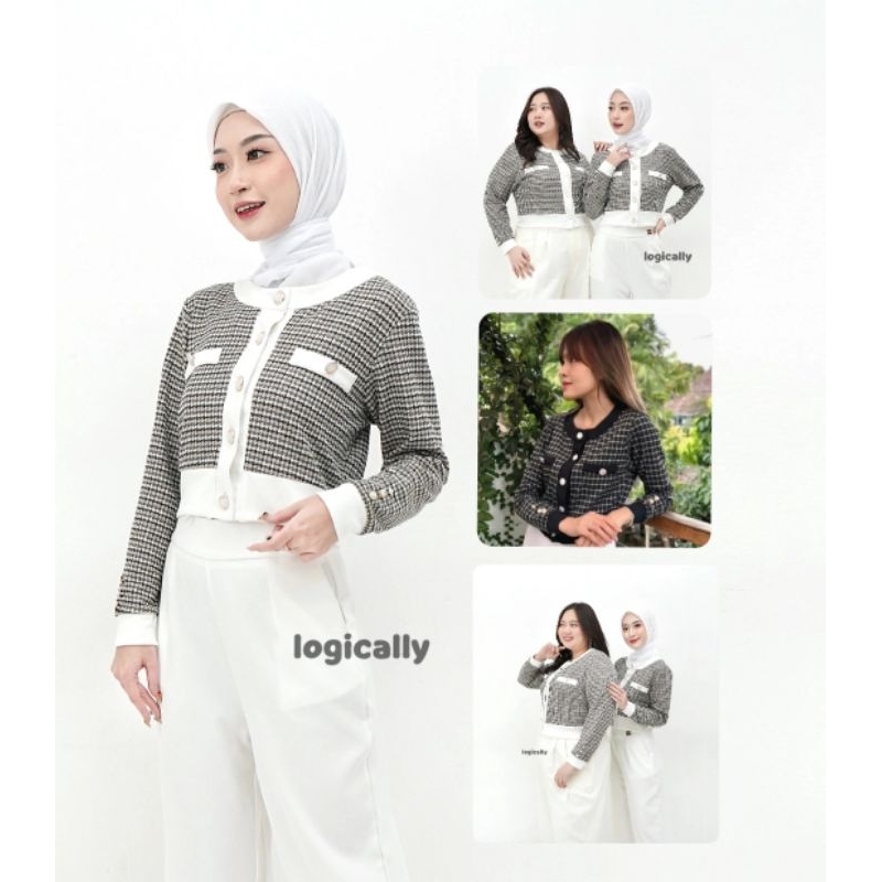012 Pocket Cardigan XS-XL / Cardigan Kancing Kristal / Cardigan Houndstood / Kardigan/ Tweed / korean style / Knit