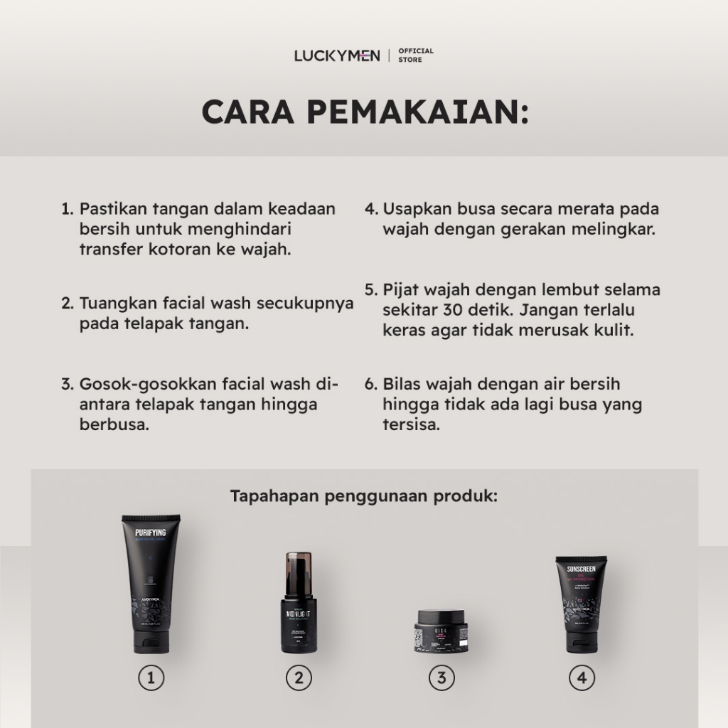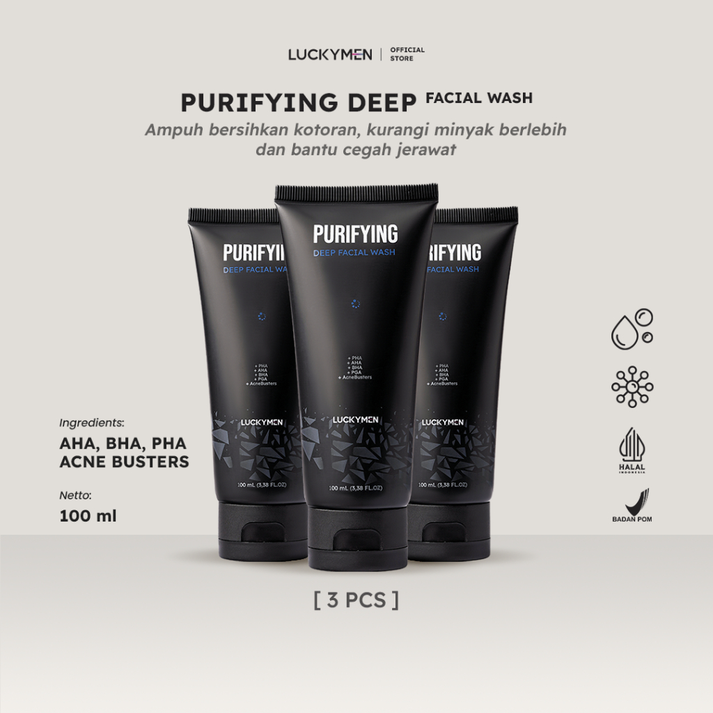 [UPGRADE FORMULA] LUCKYMEN Purifying Deep Facial Wash 3pcs- Ampuh Bersihkan Kotoran, Kurangi Minyak Berlebih dan Cegah Jerawat