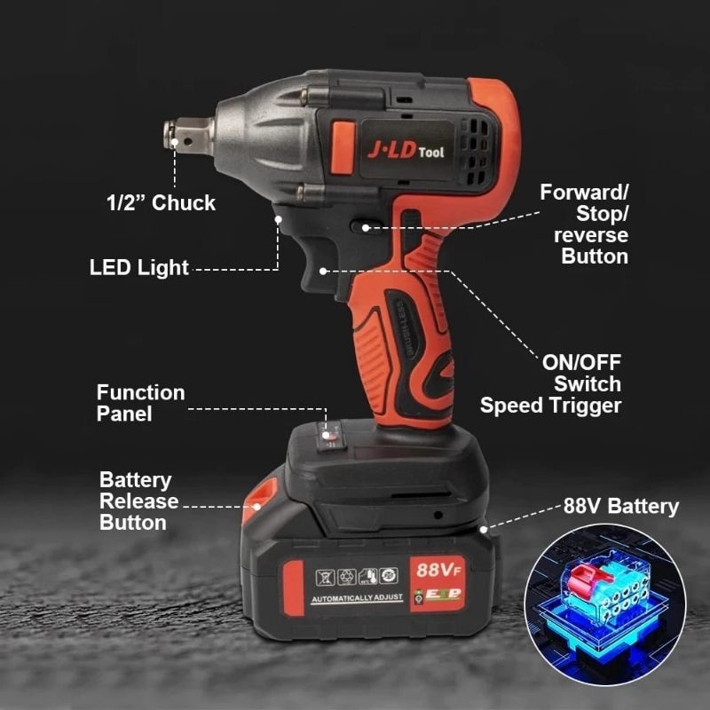 JLD JV88VF MESIN IMPACT WRENCH48V 2BATERAI LENGKAP MESIN PEMBUKA BAUT MOBIL DAN MOTOR