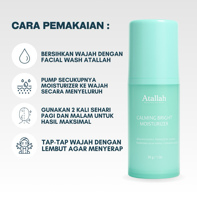 ATALLAH Calming Barrier Moisturizer Gel 30g 2PCS | Pelembap Wajah Pria | Cream pencerah Wajah | Skincare BPOM Niacinamide with Alpha Arbutin