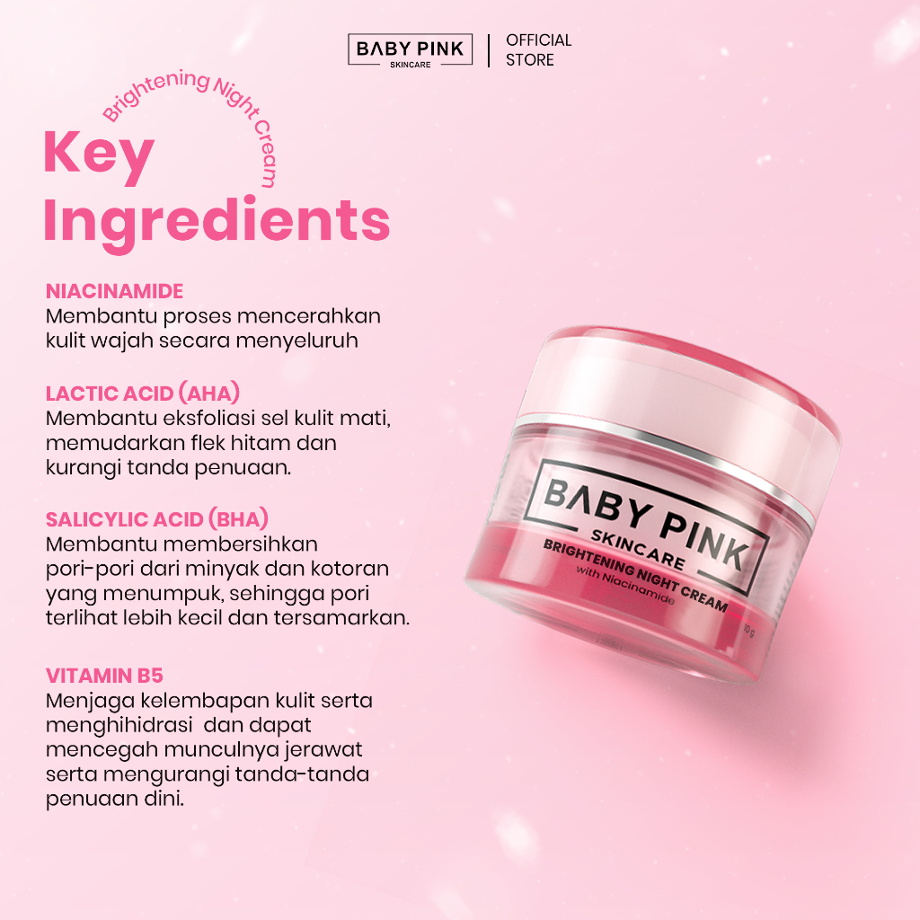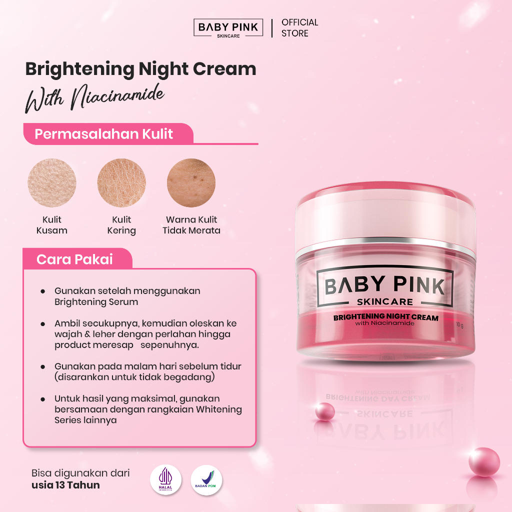 BABY PINK SKINCARE - 3Pcs Basic Whitening : Facial Wash Day Cream Night Cream dengan Niacinamide untuk kulit cerah & sehat.
