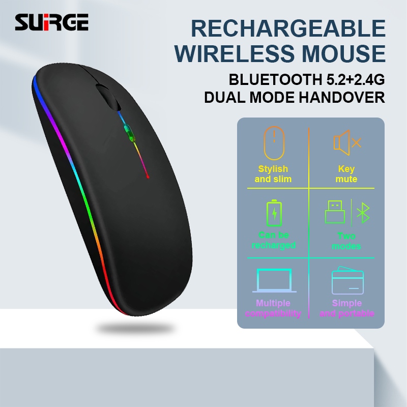 [Mall] SUIRGE BLUETOOTH MOUSE WIRELESS 2.4G ULTRA TIPIS PORTABEL YANG DAPAT DIISI ULANG LED MOUSE DIAM MOUSE KOMPUTER NIRKABEL