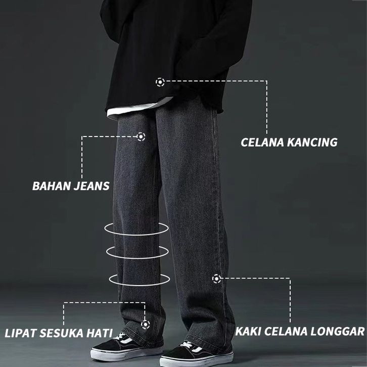 Celana Jeans Pria Baggy Jumbo Korean Style Celana Panjang Pria Bahan Denim Baggy Pants Straight Jeans High Waist