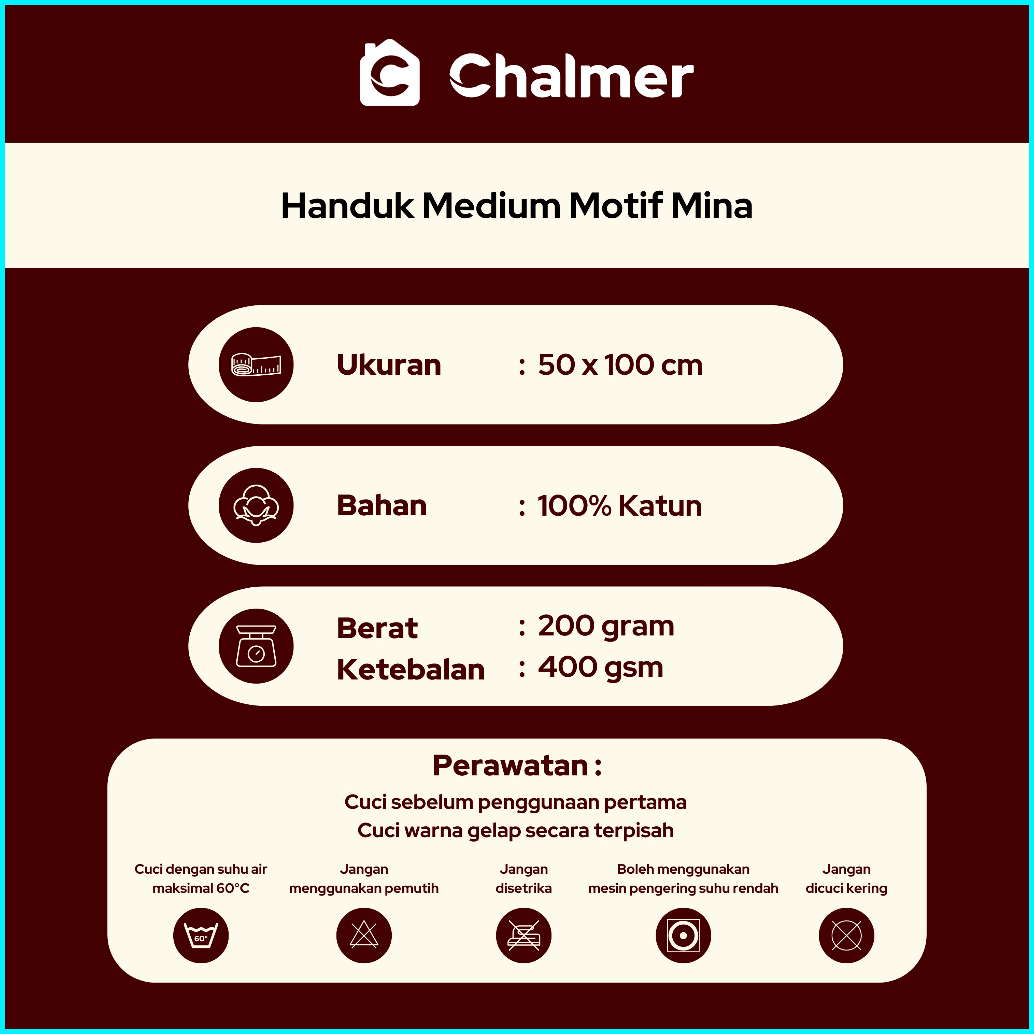 Handuk Mandi Chalmer 50 X 100 Cm Motif Mina Handuk Medium Travel Anak Kepala Rambut