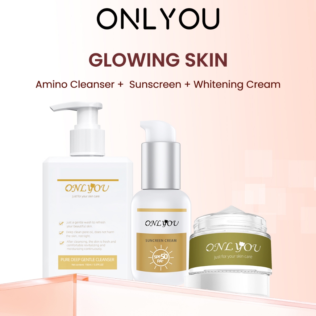 【BPOM】ONLYOU MAKEUP 3PCS PAKET / ONLYOU Whitening moisturizer glowing cream + ONLYOU Amino Facial Wash Membersihkan Pori-pori + ONLYOU Menyegarkan Sunscreen SPF 50+ PA+