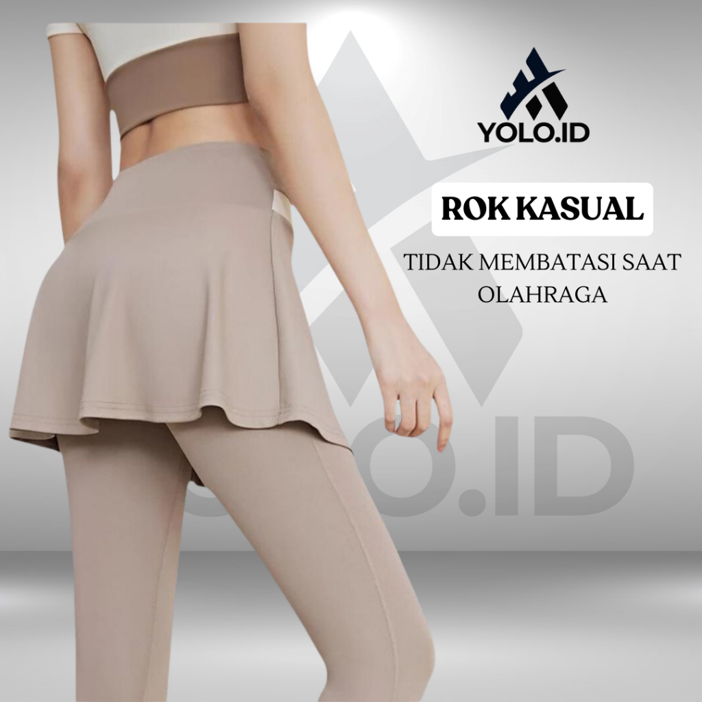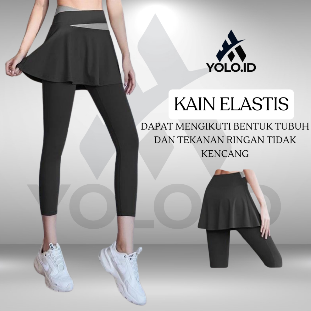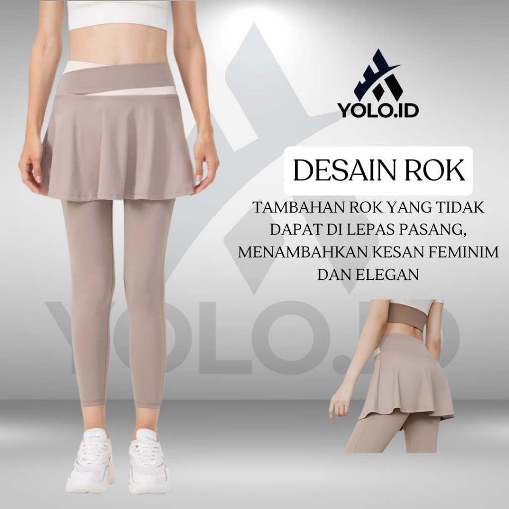 Legging Celana Olahraga Wanita Rok Celana skirt High Waist Polos Yoga Dua lapis gym tennis Running