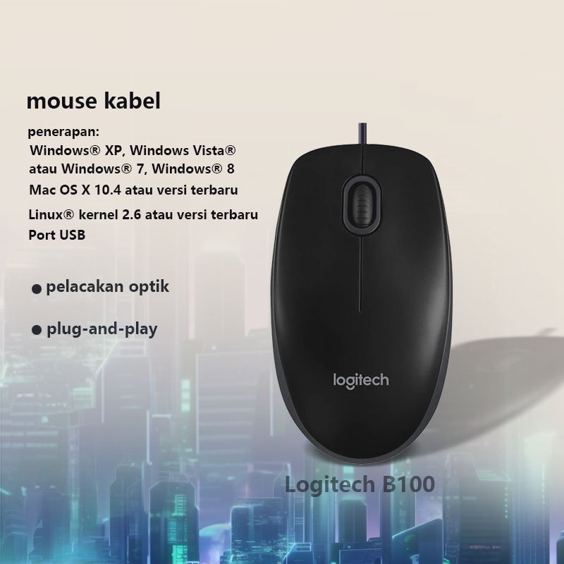 [Mall] LOGITECH B100 MOUSE KABEL UNTUK KOMPUTER KANTOR