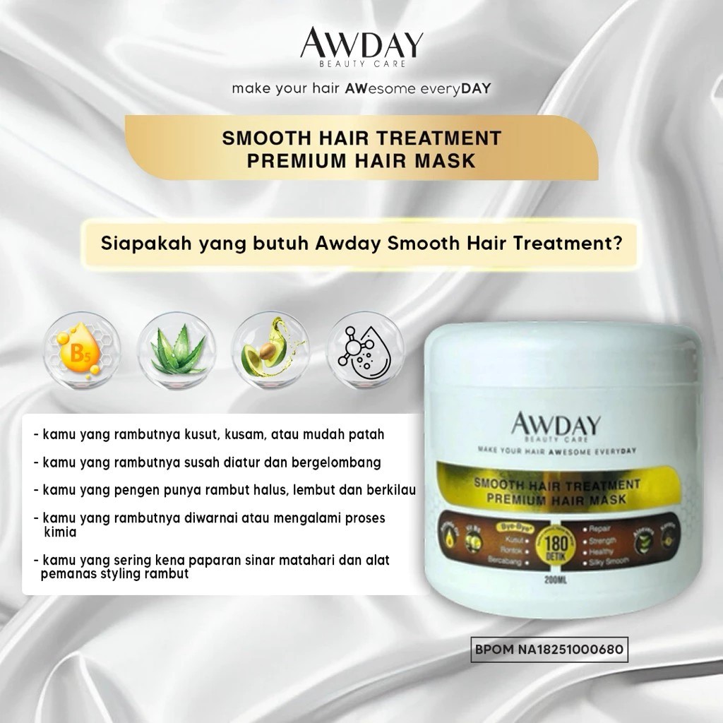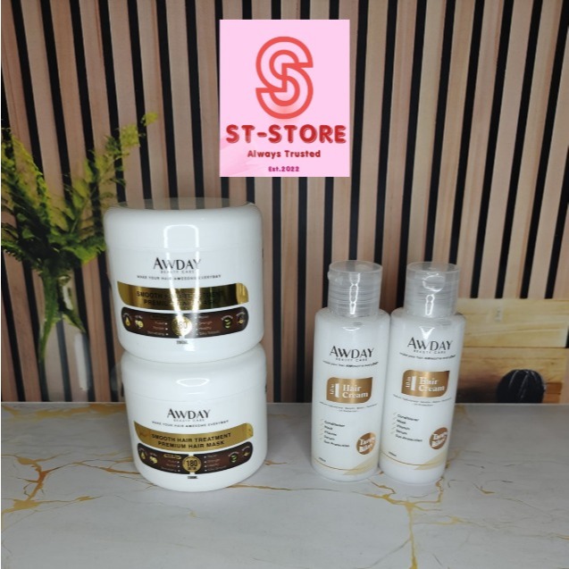 Awday Paket 2 Botol Hair Mask Masker Rambut 200ml & 1 Botol Hair Cream Conditioner Tanpa Bilas BPOM