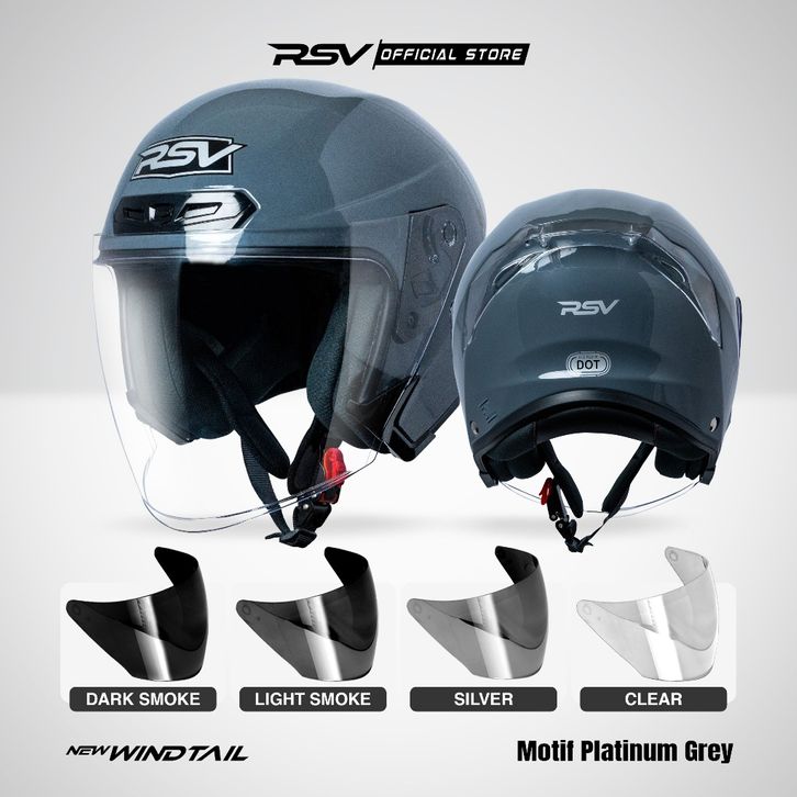 BEST SELLER (BUNDLE) HELM RSV NEW WINDTAIL SERIES + EKTRA VISOR WARNA SMOKE / IRIDIUM HALF FACE UNISEX RSV ORIGINAL