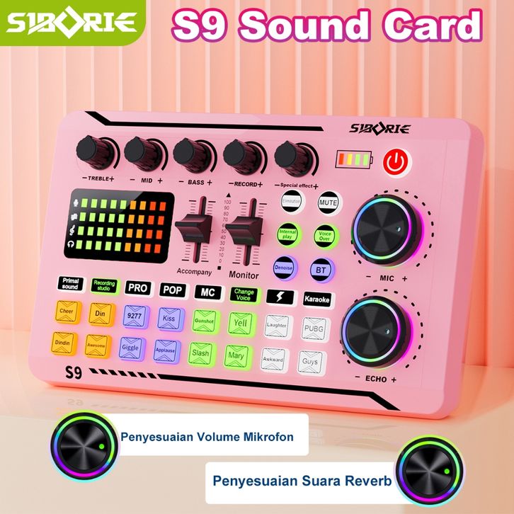 SIBORIE S9 SOUNDCARD MIXER BLUETOOTH SOUND CARD FOR PHONE PC KARAOKE KELUARGA AUDIO USB EXTERNAL