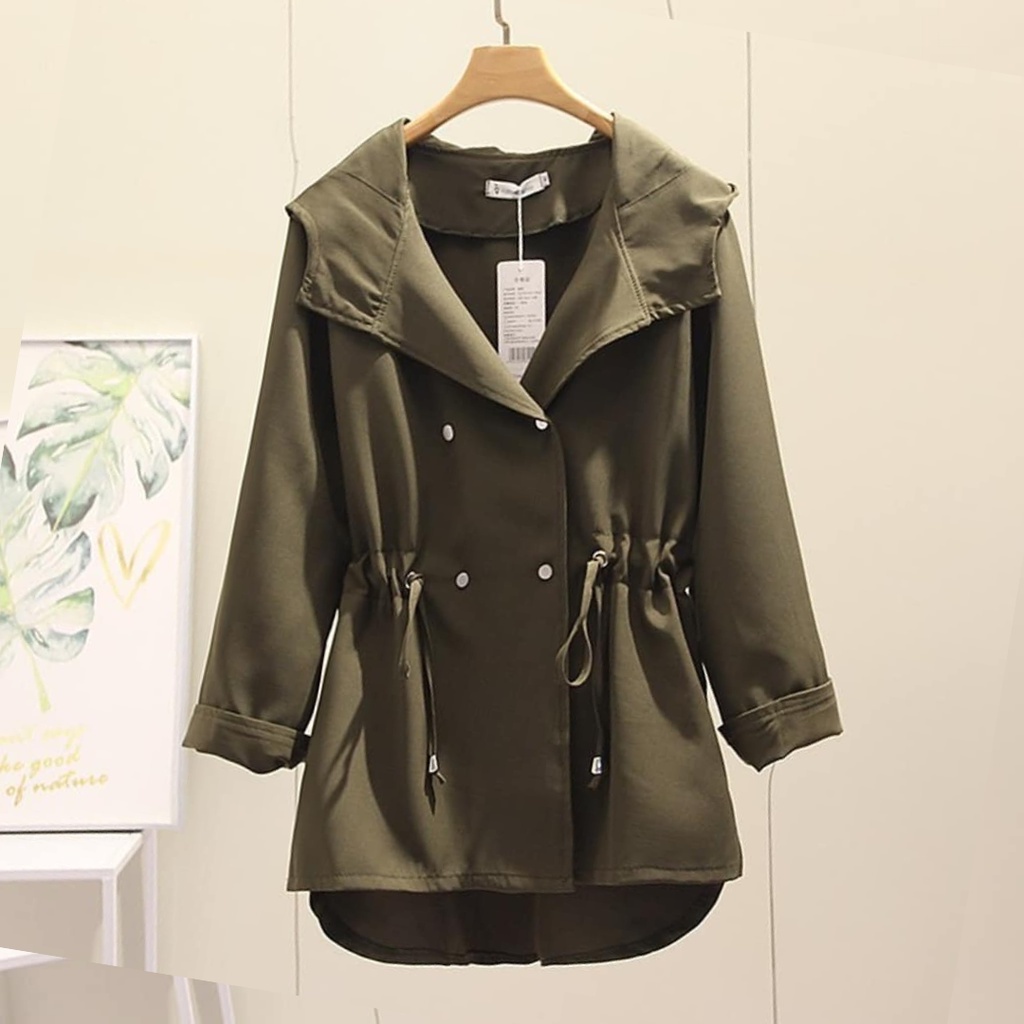 Femes - Wrinkle Pocket Parka Hoodie Jaket Muslim Wanita Korean Style