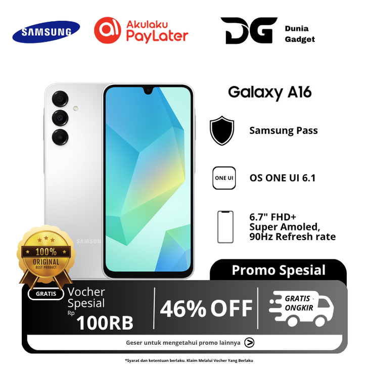 [Mall] SAMSUNG A16 Galaxy 8/128GB 8/256GB dilengkapi IP54 Super AMOLED HELIO G99 25W FAST CARGING GARANSI RESMI TANPA DP